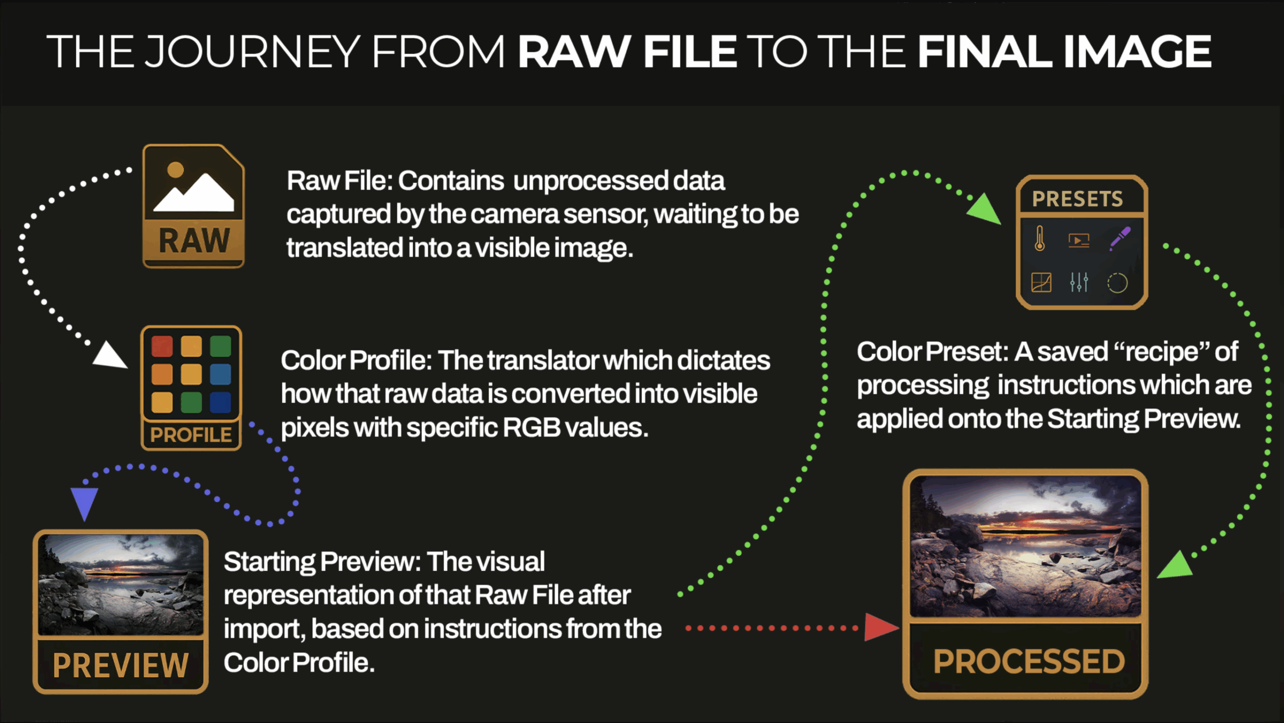 In this lesson, you’ll learn how to choose the right color profile early on, ensuring you retain the full range of detail needed for high-quality processing later. Rather than serving as a generic starting point, you’ll see how profiles establish the color “baseline” that every subsequent adjustment builds upon…leading to greater consistency and flexibility, which enhances your overall image quality.